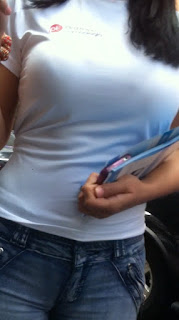 Fotografías de guapa edecán captada mientras reparte volantes en la calle, ella enseña sus sexys curvas al publico, usando un pantalón sin bolsas liso bien pegado, se le marca un sabroso trasero redondo, que cuerpaso tiene esta morena. Fotos de Nancireinoso.